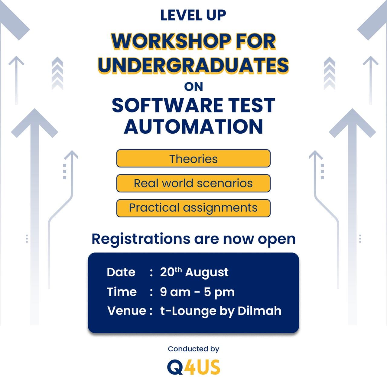 Want to know the ins and outs of software test automation? This hands-on workshop is for you. 📌 Don’t miss out! Limited spots available, click here https://q4us.dev/test-automation-workshop-by-q4us/ to register.
